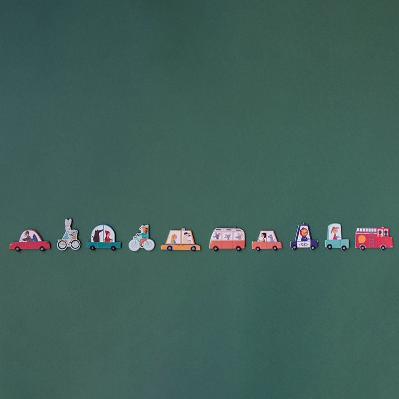 Unser Tipp: Kombiniert das Puzzle mit dem „Roads“-Holzspiel oder den Fahrzeug-Tattoos von Londji für das ultimative „Alles was rollt“-Geschenkset!