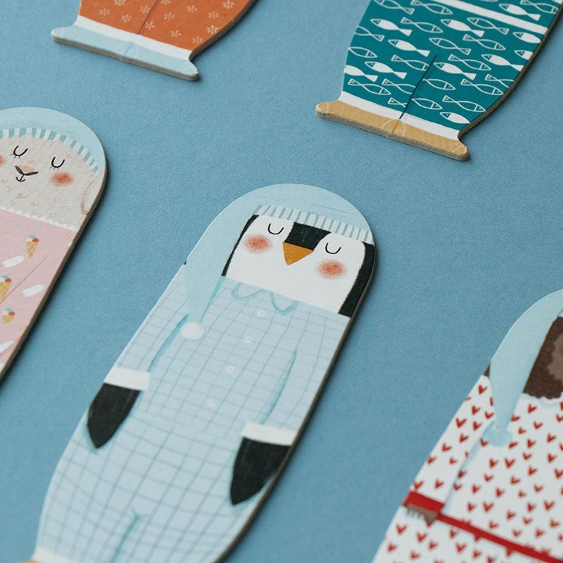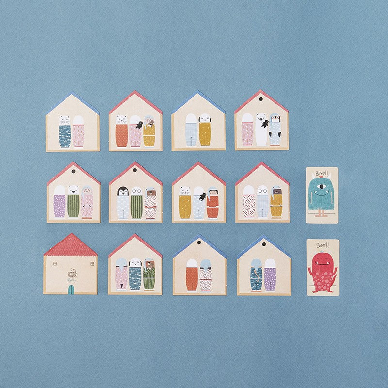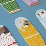 Das Memory-Spiel: Alle Charaktere liegen in ihren Betten. Findest du die Paare, die den exakt gleichen Pyjama tragen? Ein klassisches Gedächtnistraining mit charmanten Illustrationen.