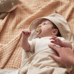 Fühl-Erlebnis: Die Kombination aus superweichem Bouclé und Fleece in der beruhigenden neutralen Farbe lädt zum Tasten und Greifen ein.
