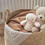 Das Entchen besteht aus weichem Teddy-Stoff und ist mit PES-Faserfüllung gefüllt. Die Augen sind aufgestickt.