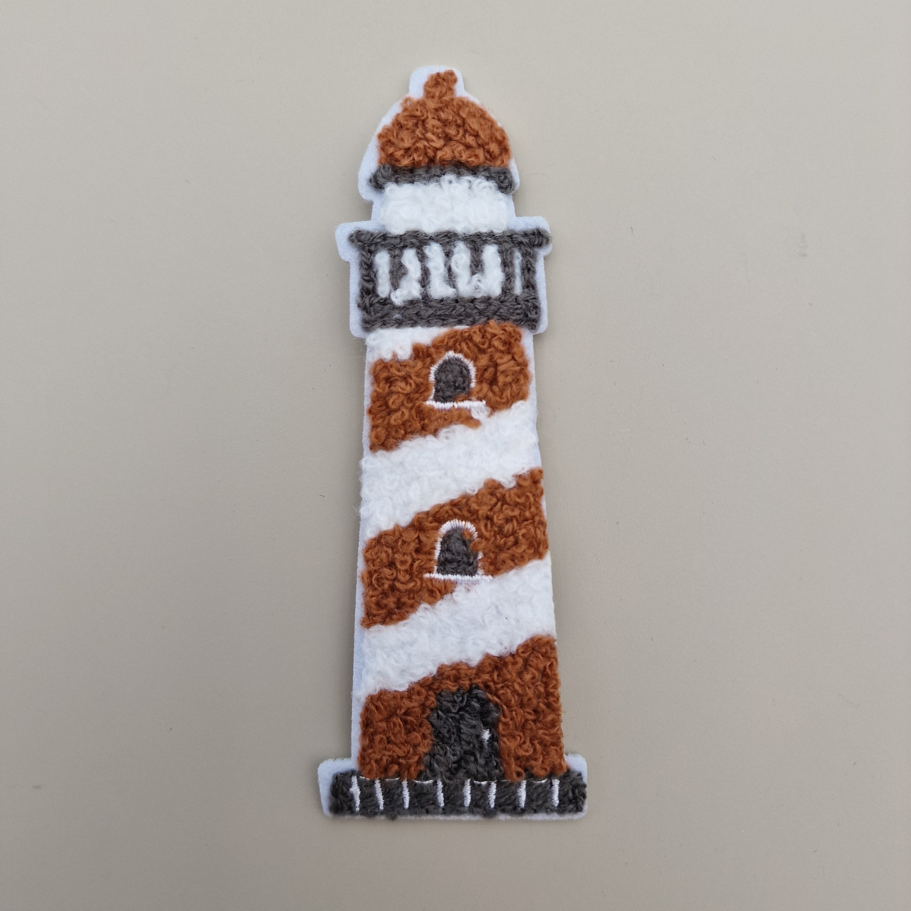 Chenille Patch „Leuchtturm“ – Maritimes Bügelbild im nordischen Design