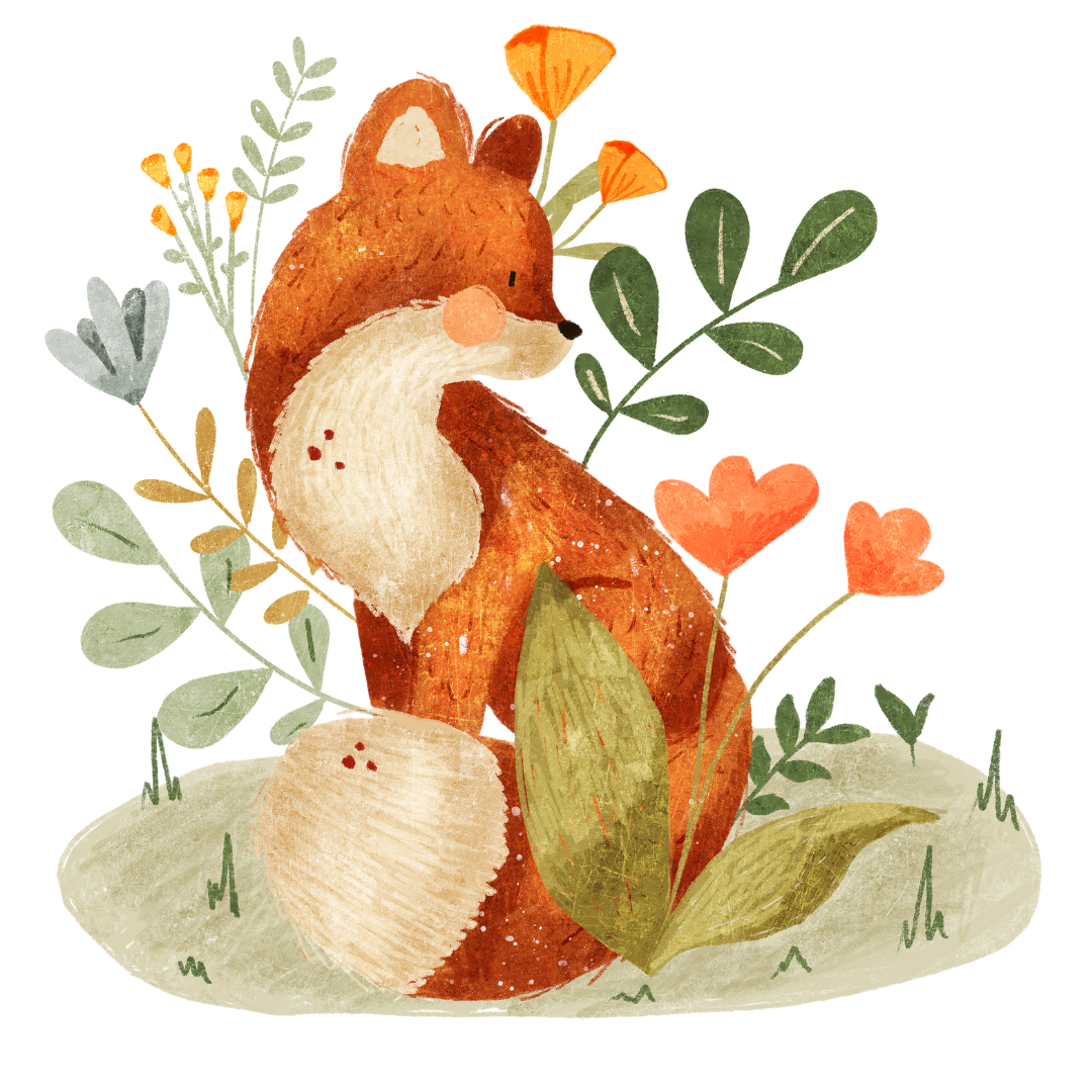 Motiv: Niedlich illustrierter, sitzender Fuchs im herbstlichen Design.