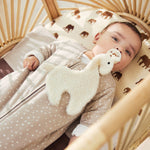 Wenn du dieses niedliche Schmusetuch mit Teddybären am Schnuller befestigst, geht er nie wieder verloren! Damit gehört die Schnullersuche im Laufgitter, Bett oder im Kinderwagen der Vergangenheit an. Nie mehr nächtliche Eskapaden mit eingeschaltetem Licht, sodass dein Baby und du hellwach sind und nach dem kleinen Schnuller suchen. Mit dem Schmusetuch holst du den Schnuller mit einem Griff aus der Ecke der Wiege und dein Baby kann sofort wieder einschlafen. Und die Teddybärform macht es zu einem besonders lustigen Spielzeug. Mit der Lasche bindest du das Schmusetuch einfach am Schnuller fest.