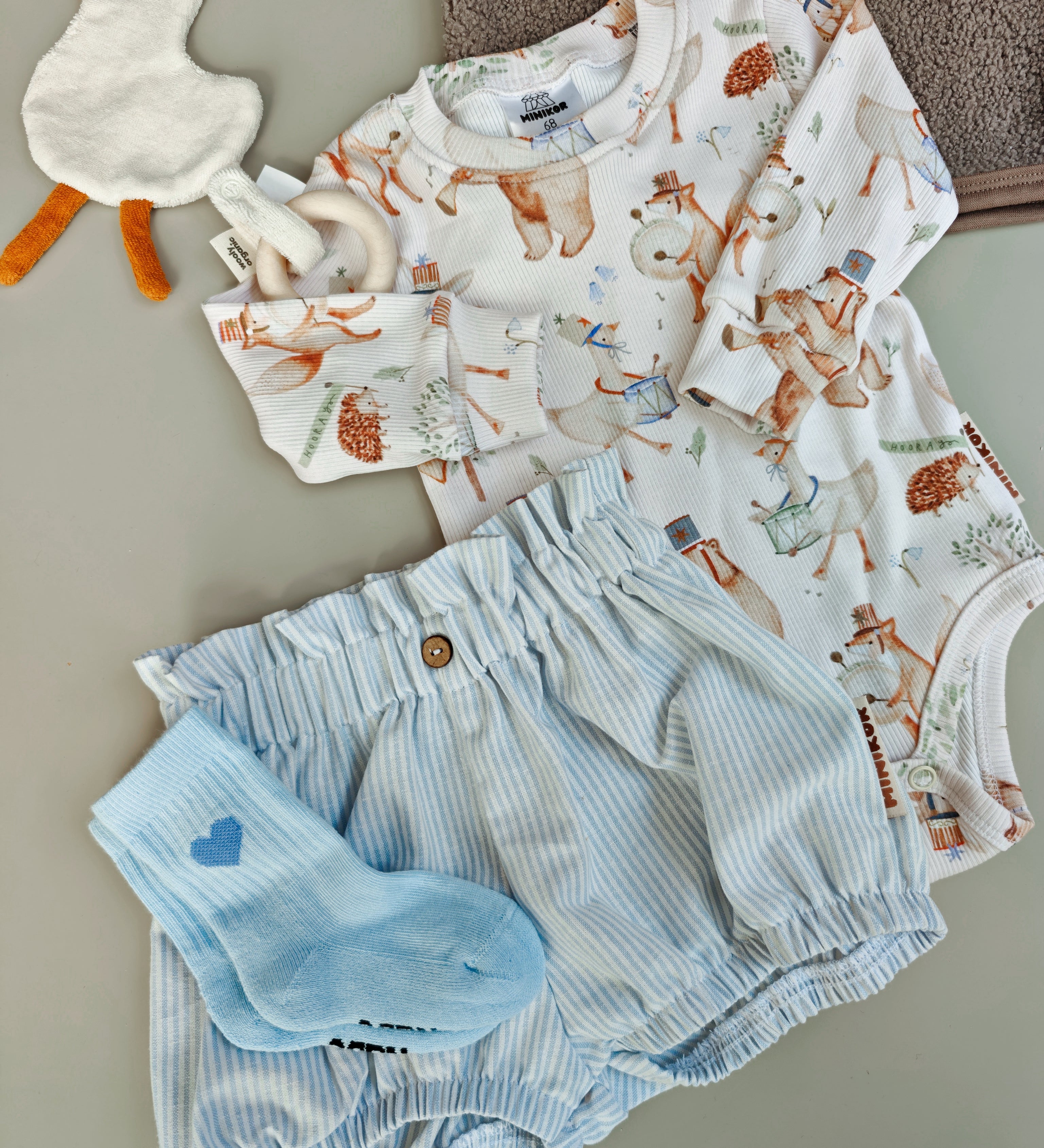 Auch die Babymode wird von mir liebevoll genäht und gestrickt und ist nicht nur herrlich bequem, sondern auch widerstandsfähig und langlebig. Ob für die Baby Erstausstattung oder Kleidung für Babys im Allgemeinen, unsere