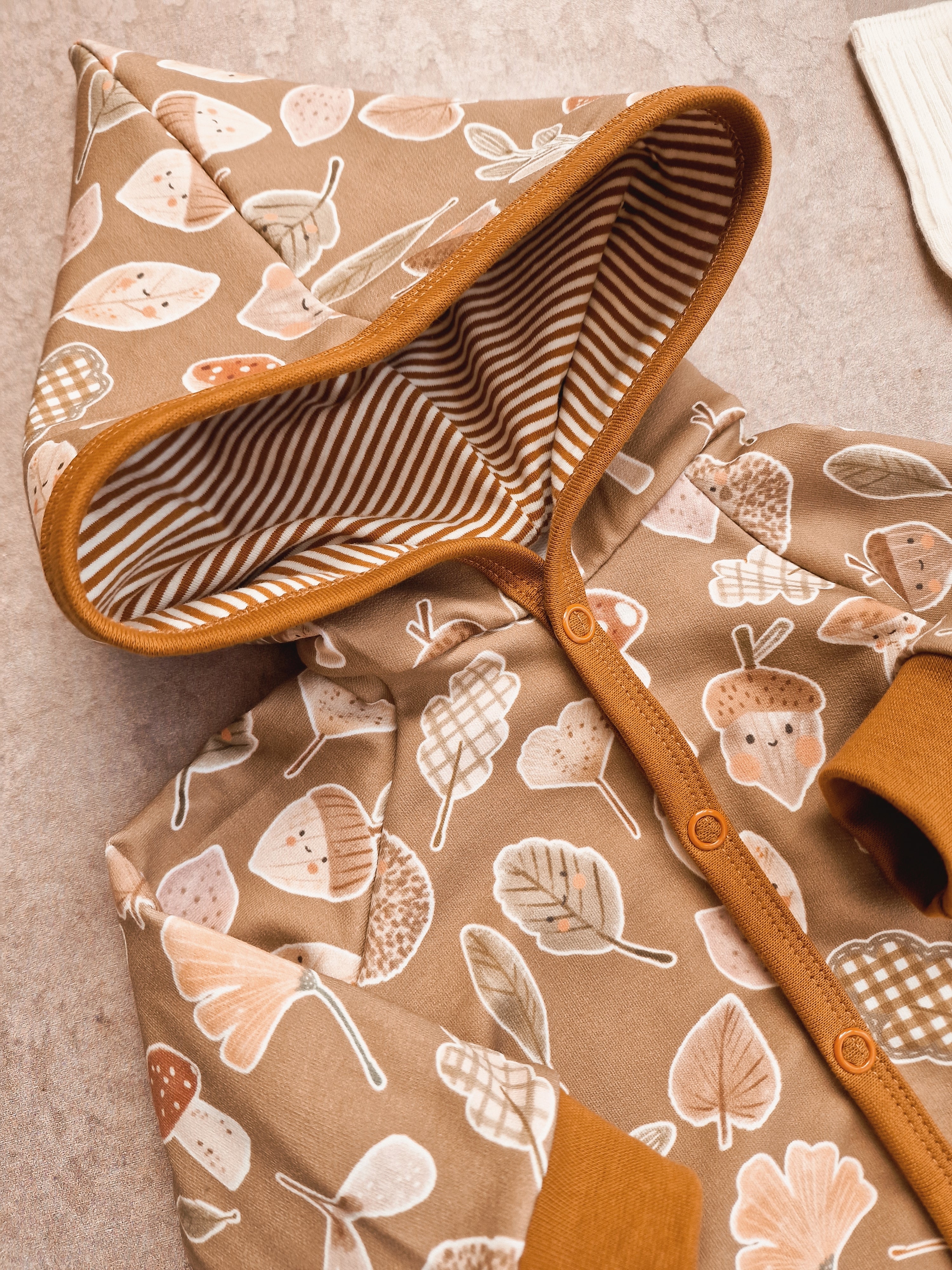 Dieser weiche Overall aus Baumwolle ist in jeder Jahreszeit ein treuer Begleiter. Er ist sehr weich und hält dich warm an kühlen Sommertagen und in den ersten Herbsttagen. Ein weicher Baumwolljersey mit Ringeln in der Kapuze macht sie kuschelig