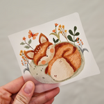 Niedliches Bügelbild mit einem schlafendem Fuchs.