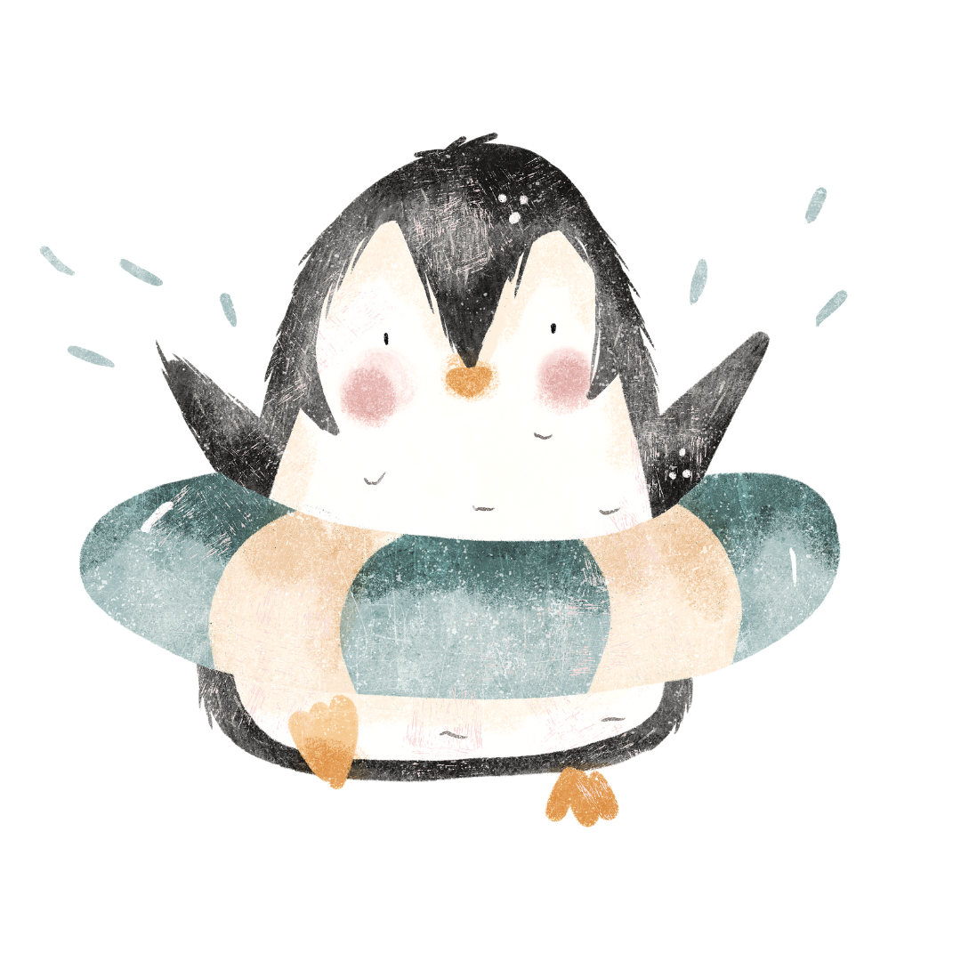 Bügelbild | Pinguin im Schwimmreifen