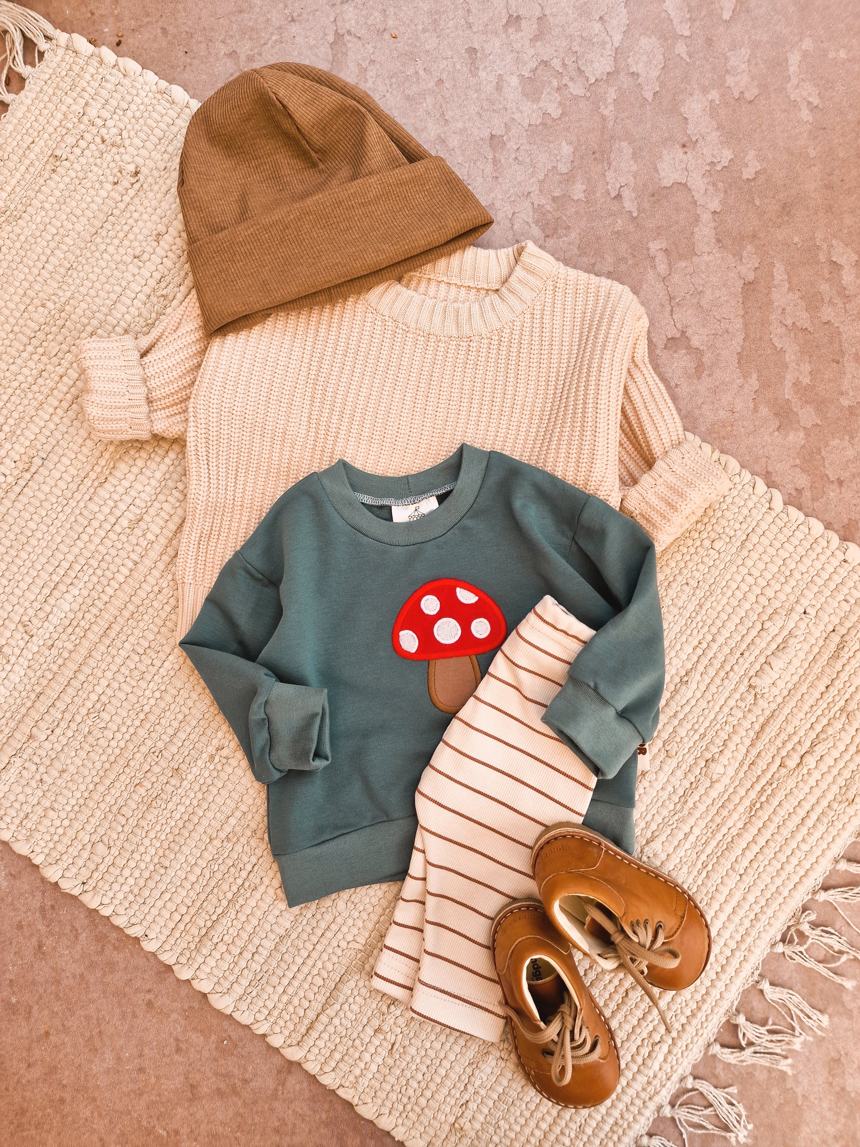 Traumhaft weicher Pullover in Strick. Er sitzt Oversize und bietet Platz für Tshirts darunter. Dazu eine Leggins, Sparkebukse oder Pumphose und fertig ist das Outfit.