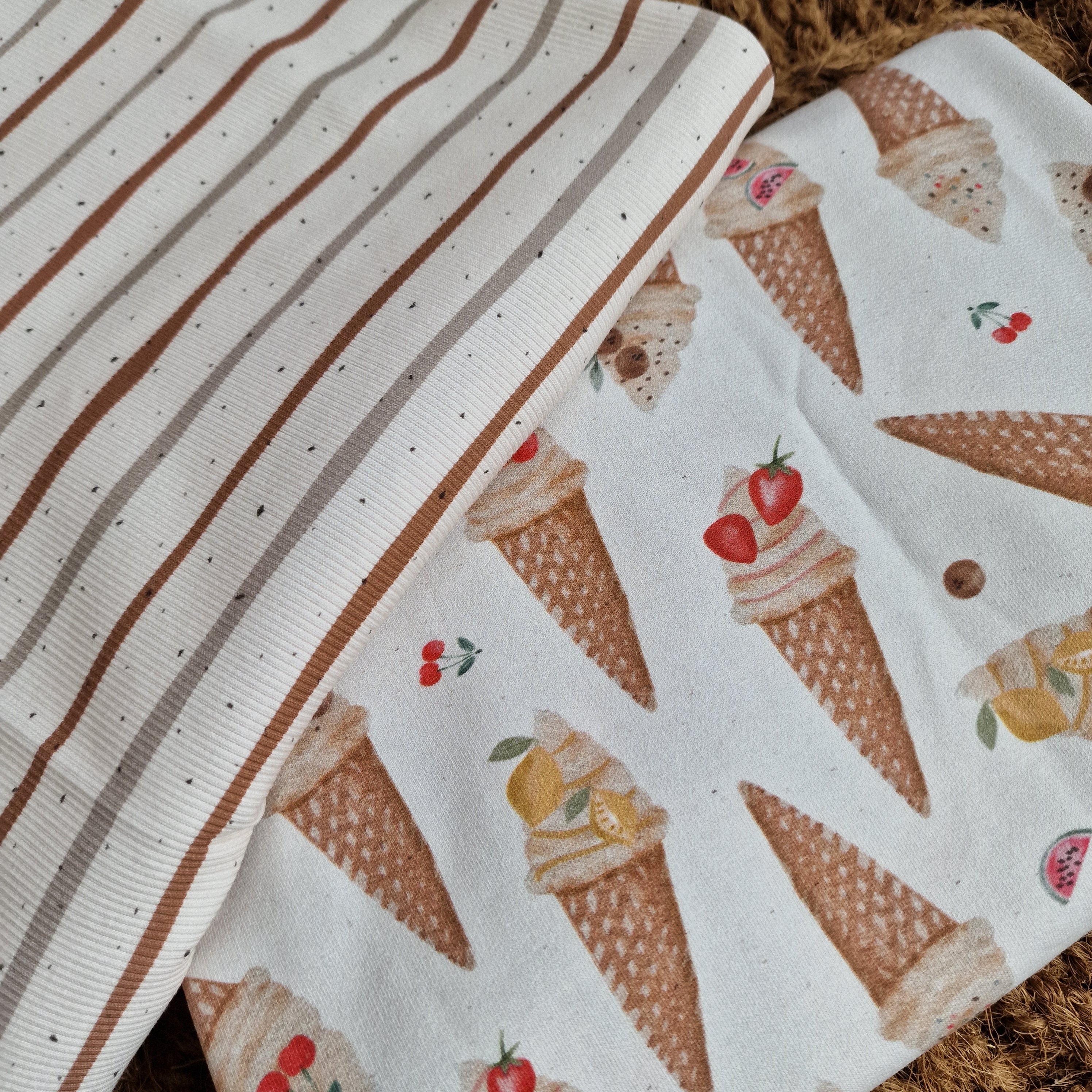 Du kannst hier weichen Rib Jersey mit niedlichem Motiv in halben Metern bestellen.