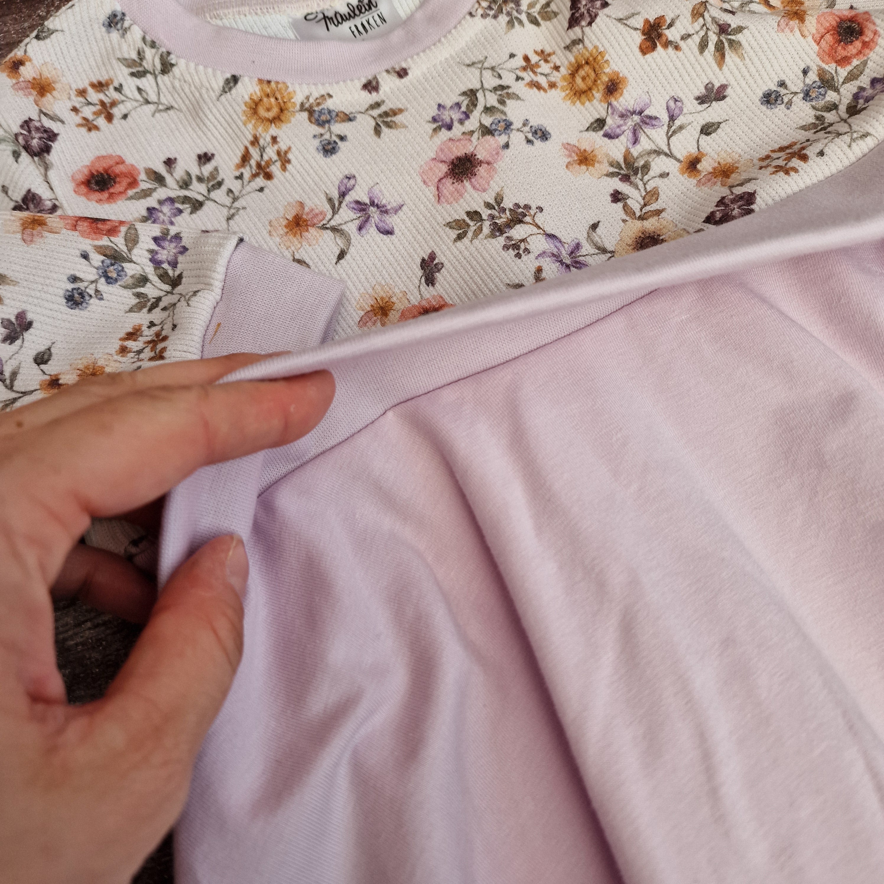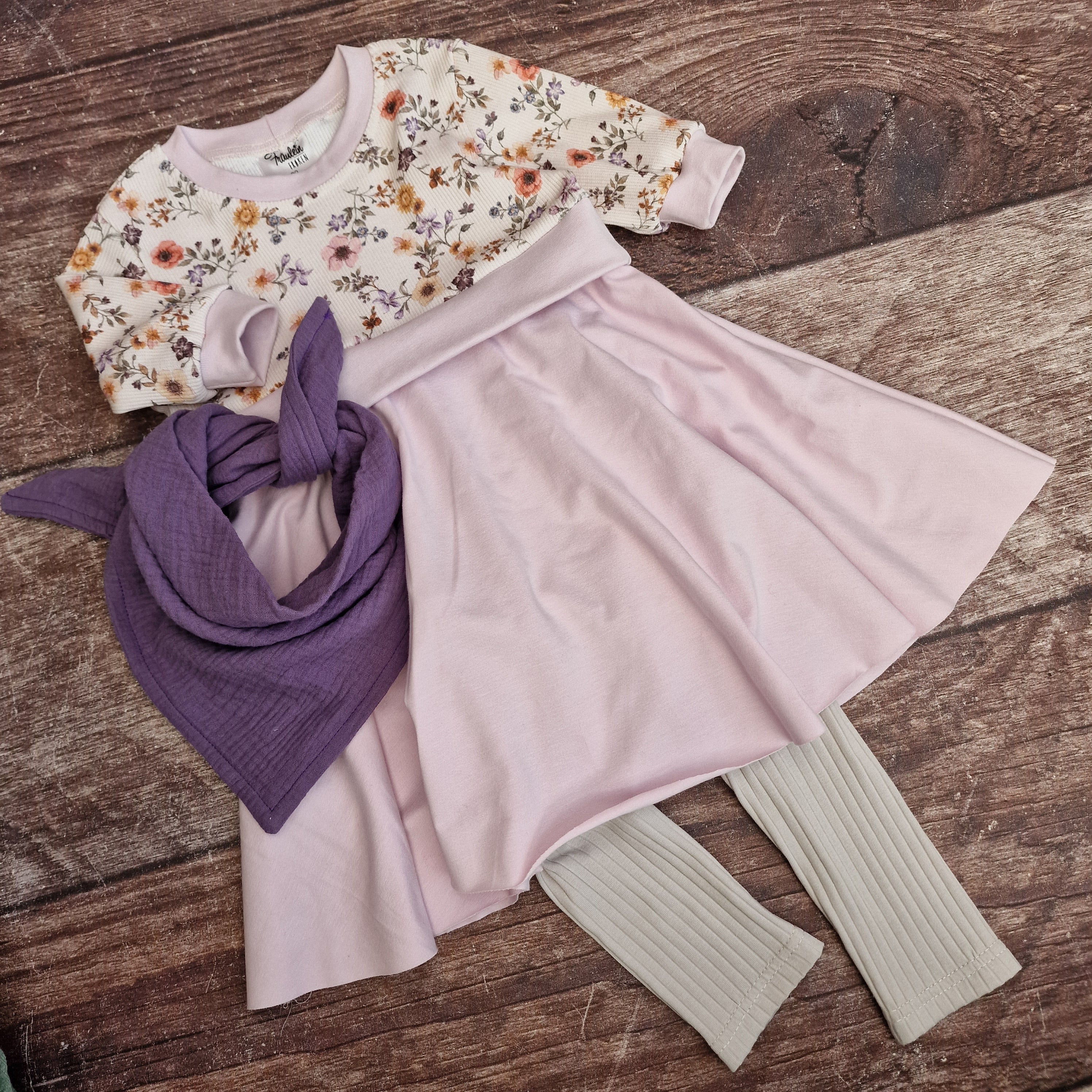 Ein Kleid aus Rib und Baumwolljersey im niedlichen Lagenlook. Rockteil und Oberteil sind fest miteinander verbunden und lässt nichts verrutschen. Simpel, einfach & trotzdem schön mit einer Leggins oder Strumpfhose zu kombinieren ist.