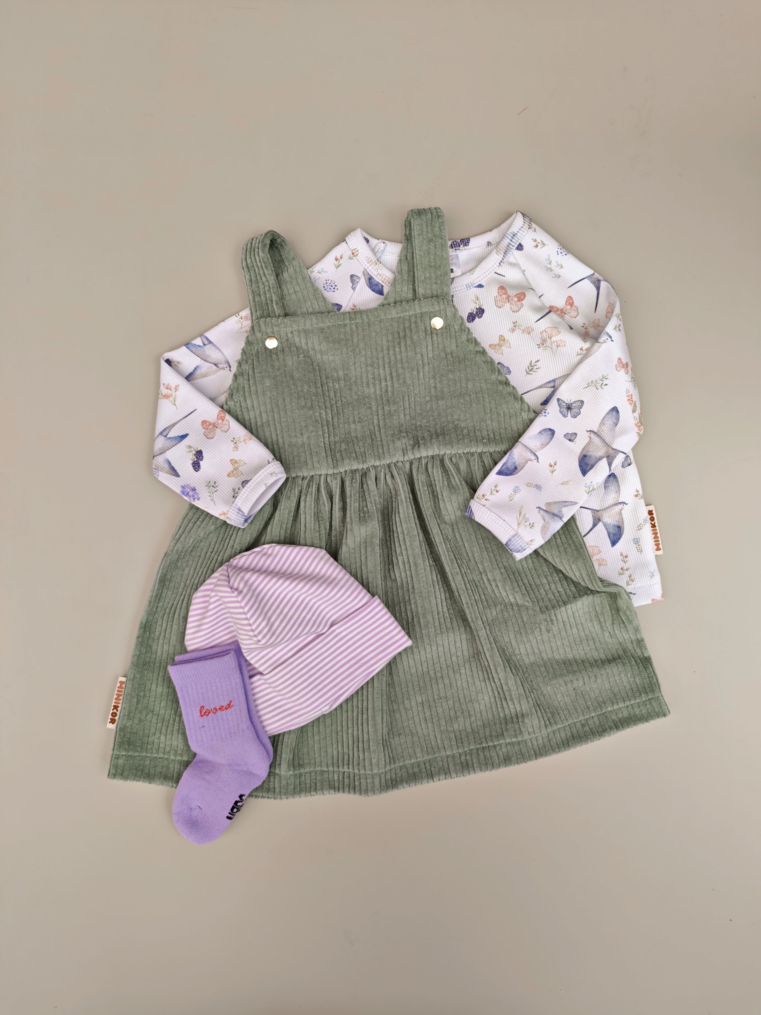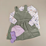 Ein Latzkleid aus Breitcord mit Druckknöpfen. Simpel, einfach & trotzdem schön mit einer Leggins oder Strumpfhose, sowie Body oder Hjertegenser zu kombinieren ist.