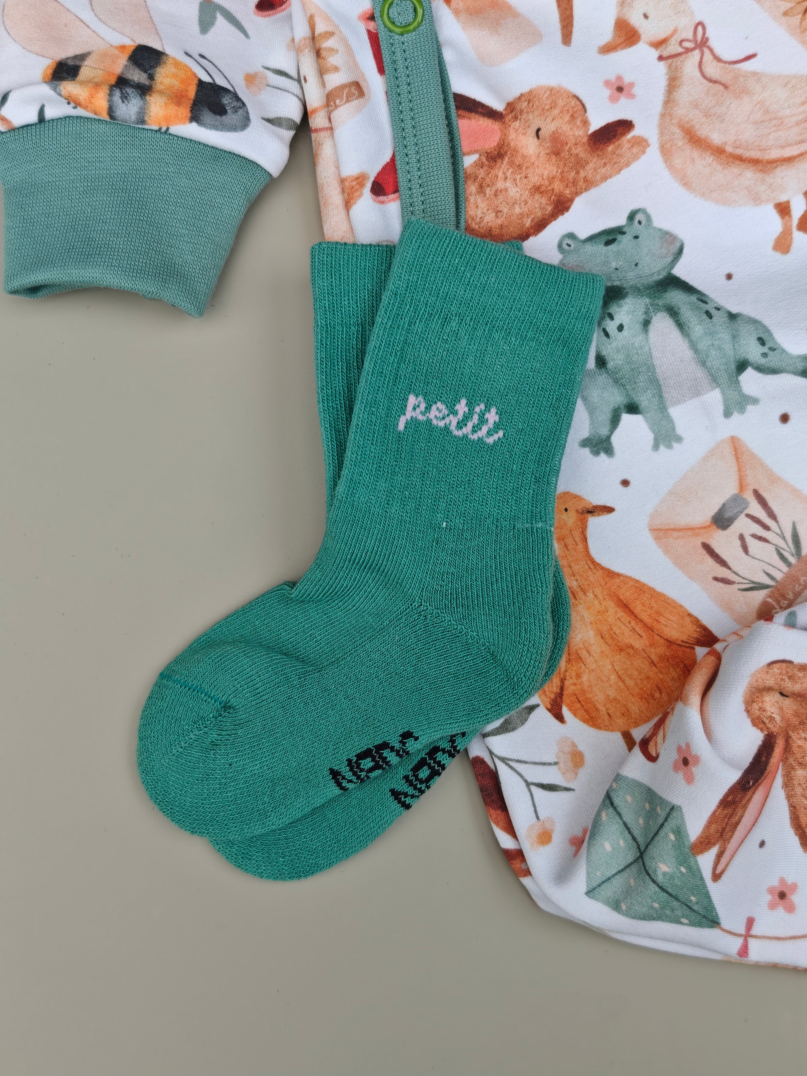 Setz auf Farbe und Stil! Hol dir die jadegrünen „petit“-Socken und lass die kleinsten Füße ganz groß rauskommen.