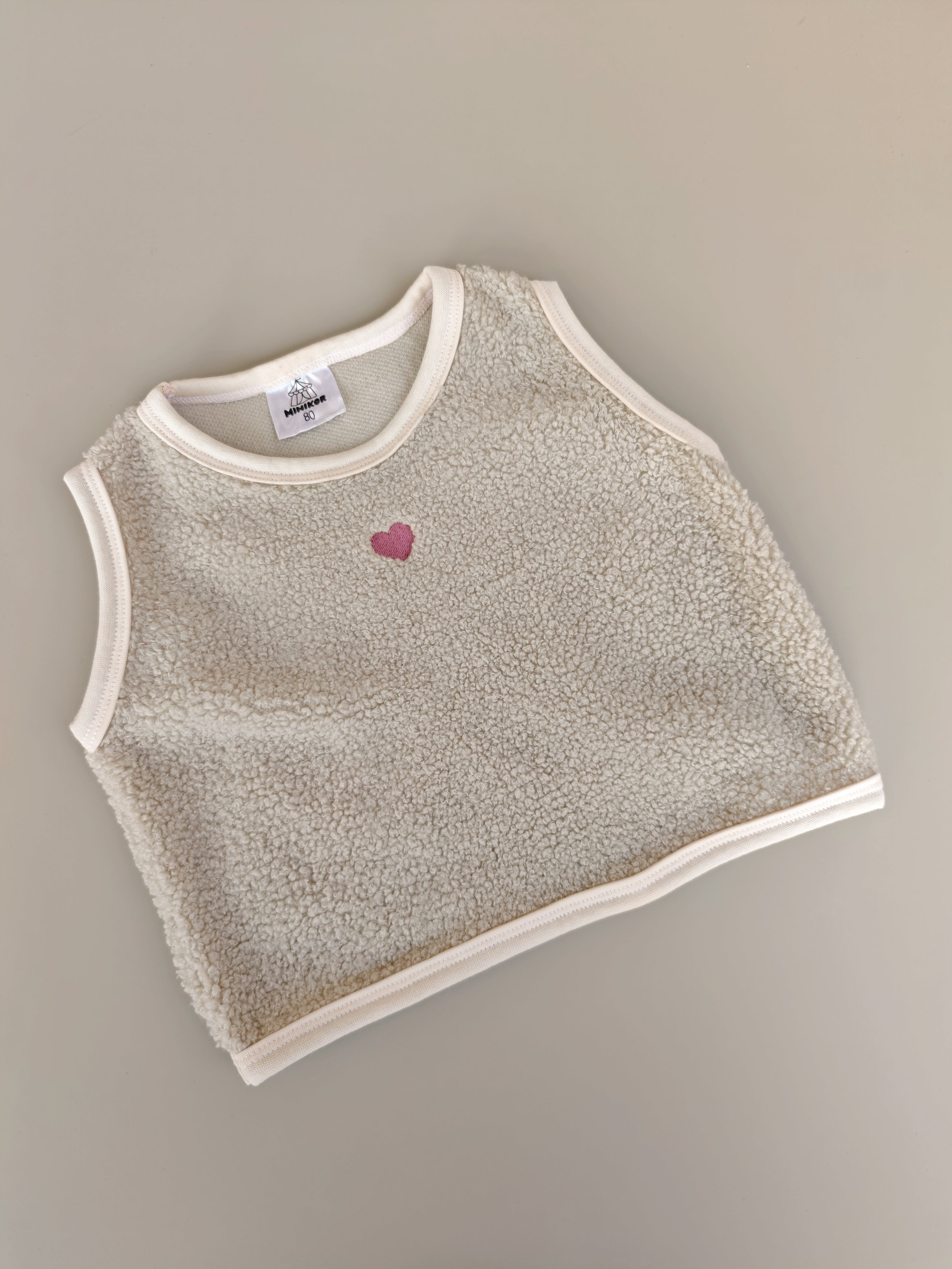 Niedliche Weste aus Teddyplüsch zum Überziehen. Mit kleinen, gesticktem Herz vorne.